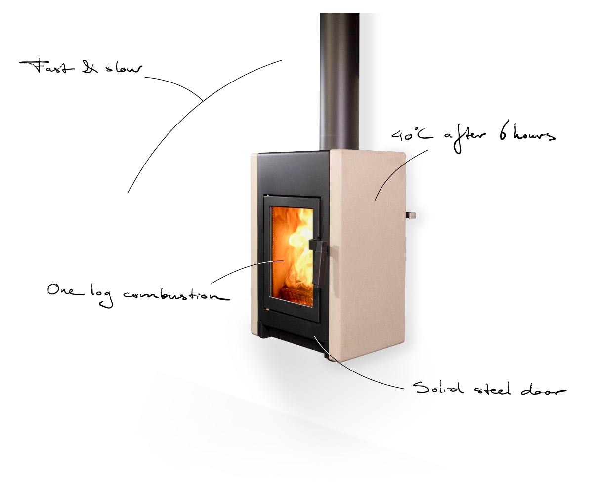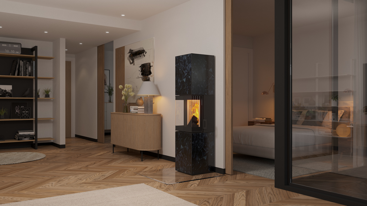 Optionaler Naturstein-Zusatzspeicher für langanhaltende Wärmeabgabe.