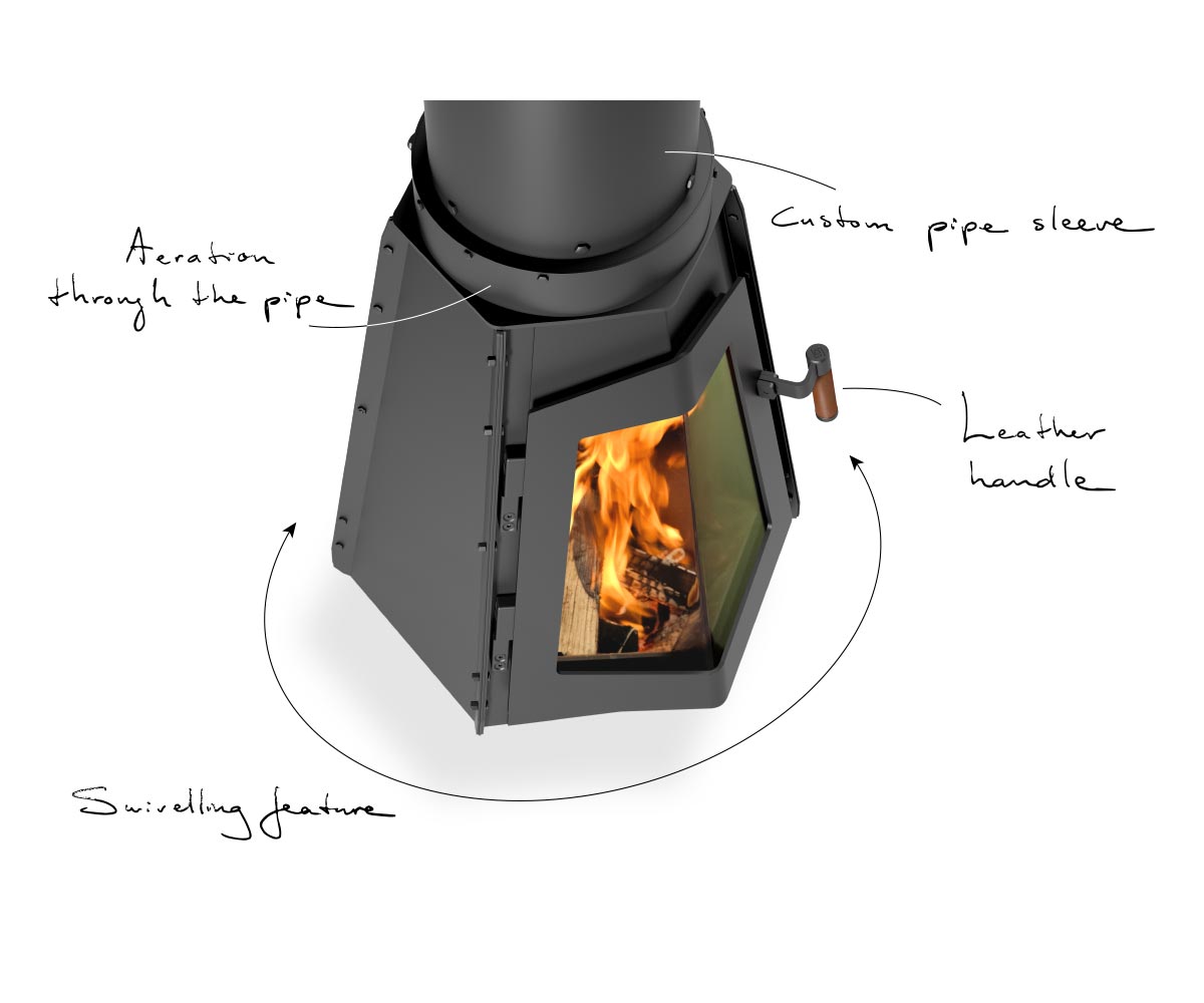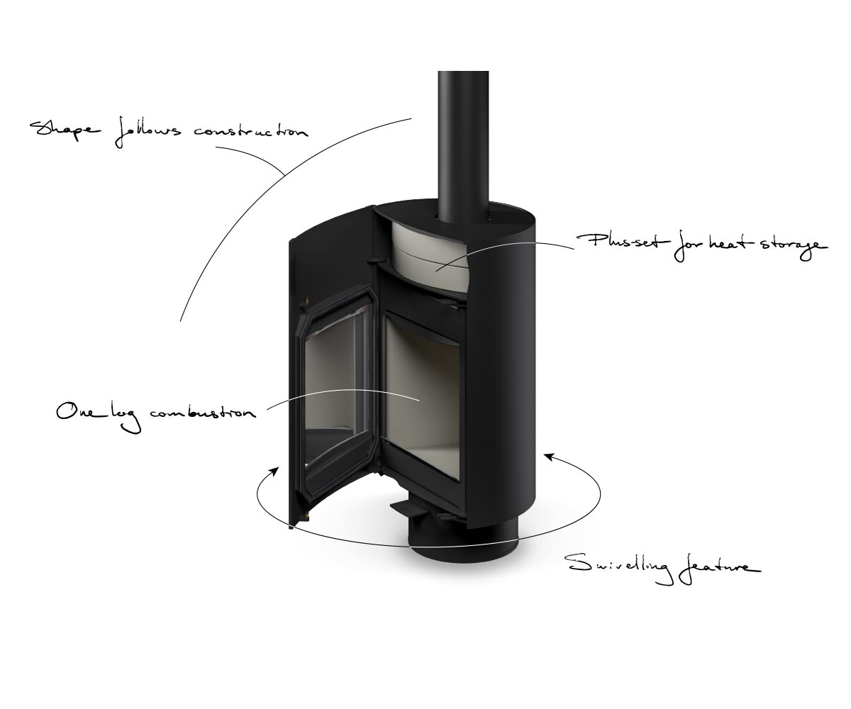 • Einige Modelle sind drehbar, d.h. der Brennkammer- oder Ofenteil kann geschwenkt werden, damit das Feuer aus verschiedenen Blickwinkeln sichtbar wird. Beispiele: Dayna, Hymme, Lynne.